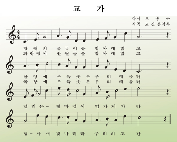 학생들이 강인한 의지와 강한 체력으로 열심히 공부하자는 뜻을 담고 있습니다.